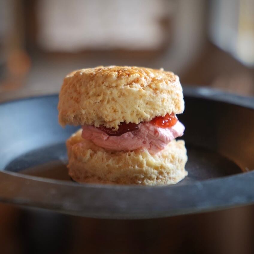 間にクリームとジャムをサンドしたスコーンサンドです.