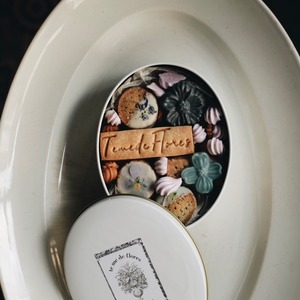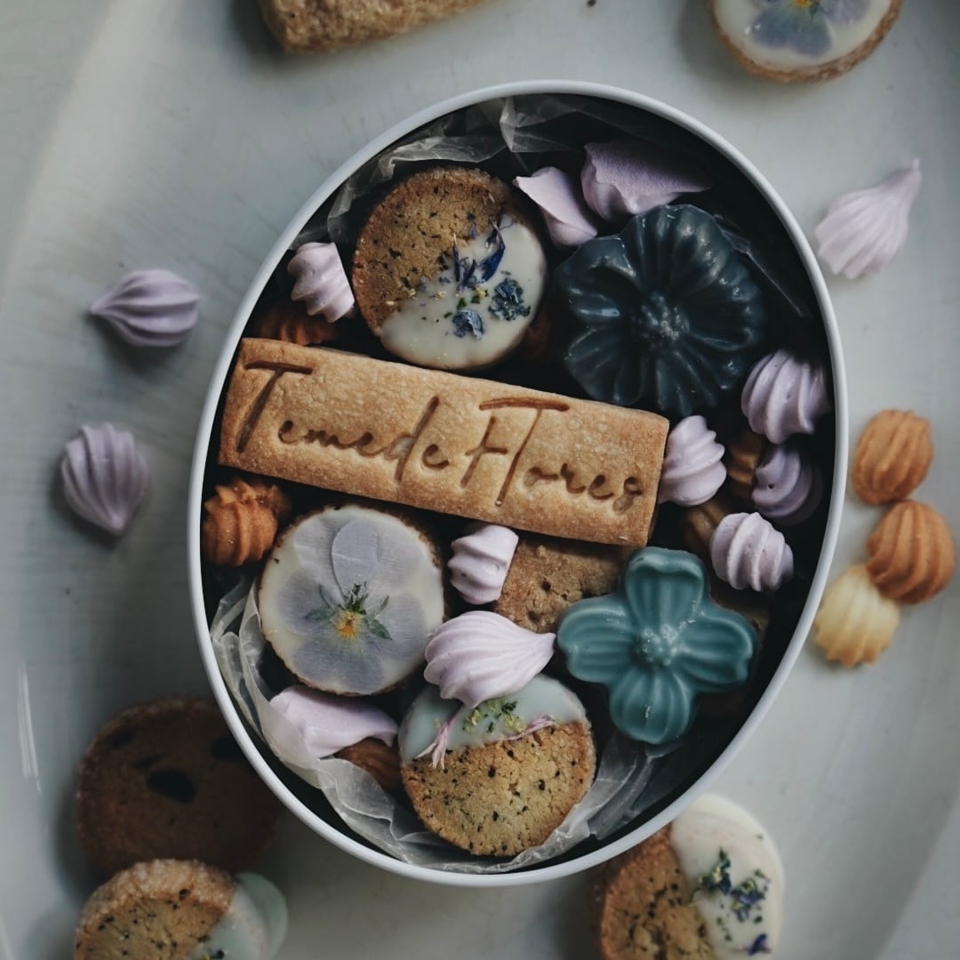 米粉 (九州産)、てんさい糖、植物性油脂 (大豆を含む)、発酵乳、卵、アーモンドプードル、米粉、アールグレイ、ほうじ茶、ココアパウダー、チョコチップ、ホワイトチョコ、エディブルフラワー、竹炭